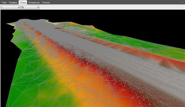 Просмотр результатов вычислений на поперечных профилях для настройки параметров алгоритма
